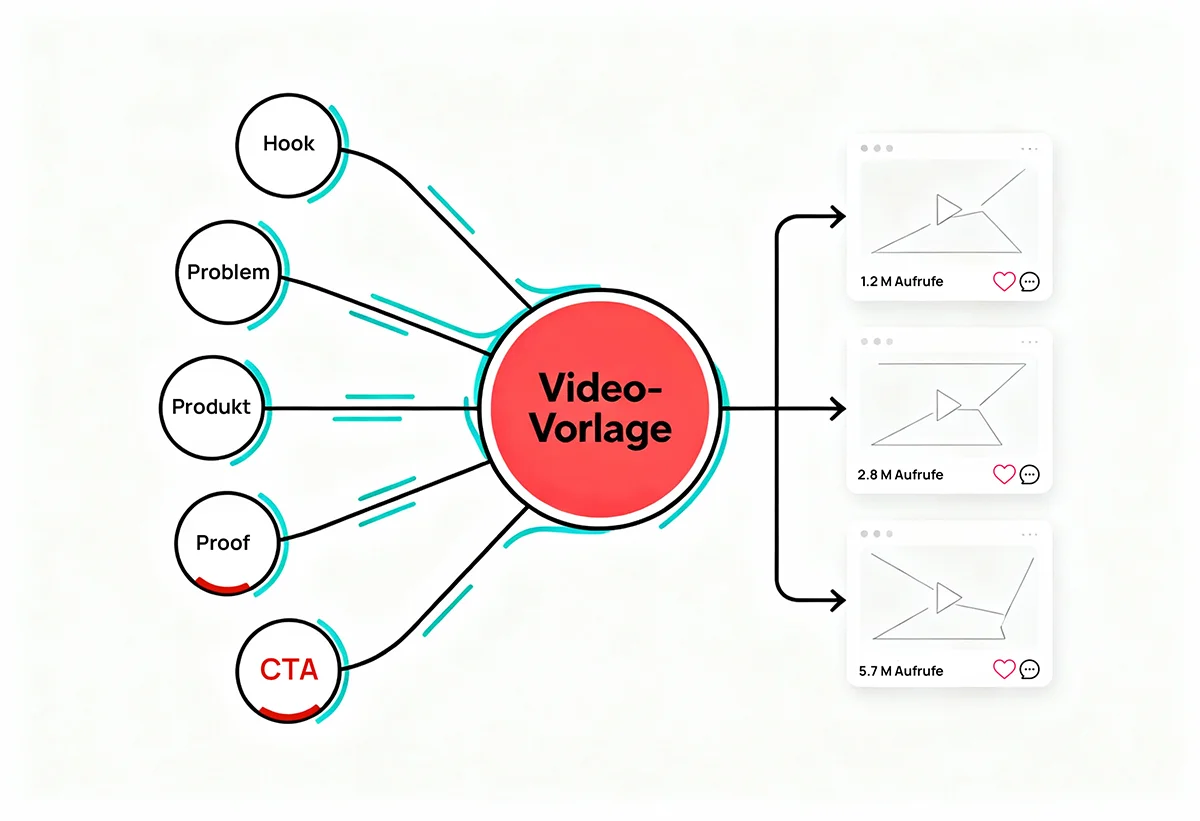 Jeden Tag analysieren wir Performance-Daten aus hunderten Videos: Welche Hooks bringen die meisten Views? Welche Länge performt am besten? Welche CTAs führen zu Sales?